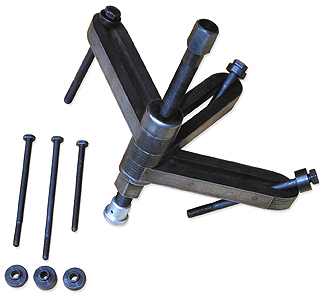 Svinghjuls aftrækker. Værktøjet er designet til afmontering af svinghjul samt primært gear hjul på KTM 50 modeller. Leveres med 4, 5 og 6 mm bolte.