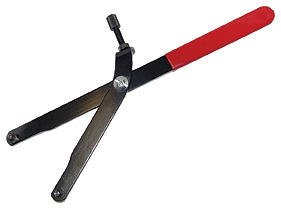 Svinghjulstang. Universalværktøj til at holde svinghjul, tandhjul m.m. Ved montering og demontering. Med 5mm og 9mm tappe. Justerbar så den kan gabe fra 13mm til 230mm og låses med stopskrue.